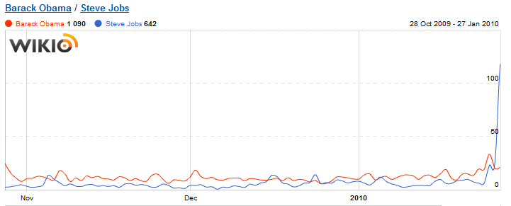 Two big news events happened yesterday: Steve Jobs announced the iPad and Barack Obama presented on the State of the Union.There was a lot of hype leading up to both and I imagine most of the planet was aware of both.